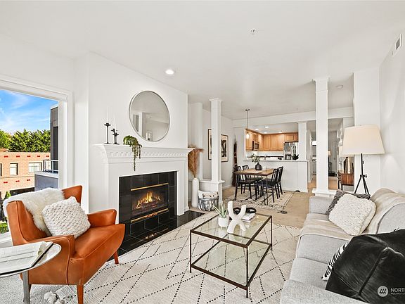 Fall in love w/ this stunning upper floor unit anchored steps from SLU! Smart, impressive floorplan maximizes utility & comfort. A wall of natural light greets you on entry & nicely juxtaposed against a cozy fireplace, plush carpeting underfoot & LED lighting above. Open kitchen/dining room keeps you connected. Loads of counterspace & cabinetry along w/ bamboo flooring, ss apps & breakfast bar complete the vibe. Primary suite: soaking tub & shower, walk-in closet & separate deck entry. West-facing deck to inhale the fresh air and sunshine. In-unit W/D. Secure underground parking, w/ 2 dedicated parking spots & secure storage for your NW gear. Superbly run association. Burke Gilman, Gas Works, Wallingford, Fremont, shops, schools & transit!