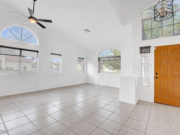 Wow! Gorgeous Single Story Open Floorplan 2 bed 2 full bath home w/sep office/3rd bed option/den/dining, cozy large back great rm with gas fireplace, stunning huge front formal liv rm w/vaulted ceil, large kitchen with wrap seated bar and full matching stainless steel appliances in beautiful condition, 2 sets sliders to lg private backyard from great rm & primary bedroom, private primary bedroom with walk in closet and double sink with sep tub and shower, all light w/dimmer switches & match ceil fans w/wall mounted remotes thru-out, RO system in kit, refrig w/water and crush and whole ice, top of line Lowe s installed pad in carpeted bedrooms, match tile thru-out, Lowe s top quality int/ext solar shades thru-out, beautiful matching cultured marble bathroom lavatory countertops from Onxy Collection, add storage in garage, back patio, Available now. $3k=Owners pays EVERYTHING! Fantastic Location! Near Lone Mountain Hiking, Mountain View Medical Center, Summerlin Hospital, 95 & 215. See.