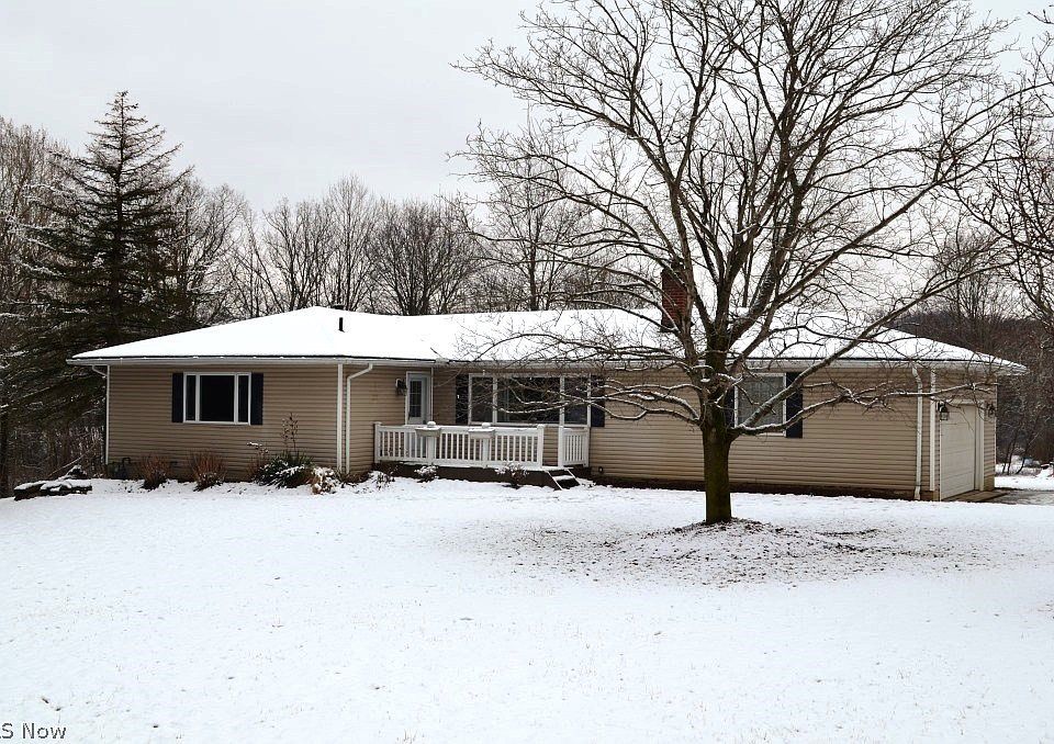 Wonderful ranch home, nestled on 2+ sprawling acres in Richfield Township, features spacious living areas with lots of natural light throughout. Expansive front porch opens to inviting entry. Engaging living room highlights brick fireplace, large picture window, and ceiling fan. Bright and cheery kitchen, with ample cabinetry, opens to dining area with access to deck. Spacious master bedroom presents large picture window and private bath. Two additional bedrooms and full bath complete the main level. Spacious lower level recreation area with newer carpeting and two storage areas. Deck overlooks tranquil backyard with wooded views. Two car attached garage.