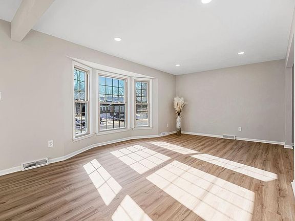 BACK ON THE MARKET at no fault to the sellers. Fully remodeled home, nestled in a cul de sac in a well maintained Gladstone neighborhood. Need room to spread out? This is your home! The entrance greets you to a formal living area with a bay window, brand new LVT flooring and can lighting, connected to a dedicated dining with a gorgeous chandelier and updated kitchen. The kitchen features granite countertops and all new appliances. Beyond the kitchen is an enclosed sun room, a perfect breakfast nook or cozy coffee room, overlooking a backyard with mature trees. A short flight upstairs, you'll find three bedrooms with new carpet, a full bath with a fresh new vanity and flooring, and a convenient laundry area. The primary suite is expansive and private, with tons of closet space. The lower level great room is a perfect area for gatherings; a focal wall with a massive fireplace, built in shelving, a wet bar with mini fridge and sink and half bath. The lower level walks out to the back yard, enclosed with a long lasting iron fence. More finished space in the basement with LVT flooring, painted rafter ceilings and the utility room. Take a peaceful walk or ride on the Rock Creek Trail , which passes by the rear of the cul-de-sac. Location Location! Approximately 15 minutes to downtown KC, Zona Rosa, Liberty and 20 minutes to KCI!