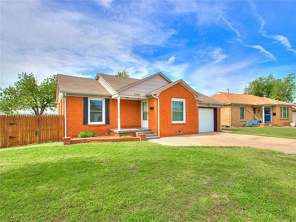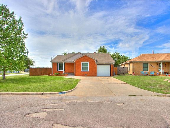 This cute home sits on a corner lot with backyard access and a parking slab. The house has two bedrooms, 1 1/2 bathrooms, inside laundry, 1 car attached garage with opener, floored storage area over the garage, gutters, extra wide driveway, and privacy fence. The upgrades in the last year and a half included vinyl Low-e glass windows with a transferable warranty, a new front door, and a garage overhead door. The carpet is a year and a half old with original hardwood underneath, and the house was painted inside and out. The backyard along with access and parking has a large floor storage building, and a large, covered patio with a storm shelter. This home is conveniently located. It will sell quickly, so be fast.