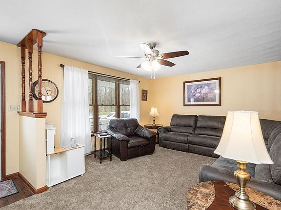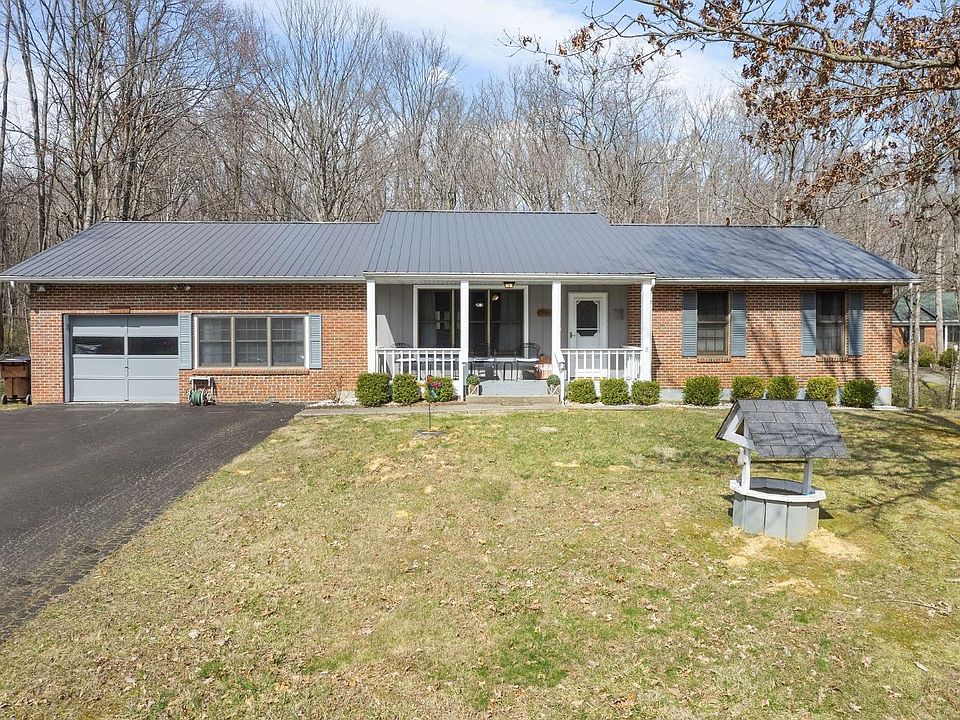 Welcome to your new home in the country! This beautiful 4 bedroom, 3 bath ranch home sits on over an acre of lightly wooded land with rolling hills. Features include an unfinished walkout basement with partial kitchenette and pool table, a big, covered deck, a covered front porch, an oversized 1 car garage, two primary suites, new metal roof with gutter guards in 2021, fresh paint and carpet throughout most of the home,newer kitchen appliances in 2020.
