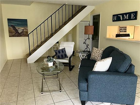 A hidden gem! Minutes to shopping, dining , performance arts theatre and Sanibel and Fort Myers beaches.Established community with 2 pools, bocce ball, tennis courts and lush tropical landscaping.Safety provided with 24 hour gate access and single car garage parking .Freshly painted and all carpeting fresh and brand new. Includes all appliances with washer and dryer inside unit. Privacy bedrooms located upstairs. Screened in porch to enjoy the lush outdoors. Low HOA fees!