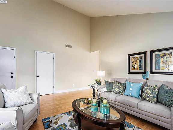 Stunning and elegant with large windows showing off and sunny and bright home. Vaulted ceilings in the living/dining room. open floor plan as the kitchen opens to the family room. a pool with security fencing & covered rear deck.