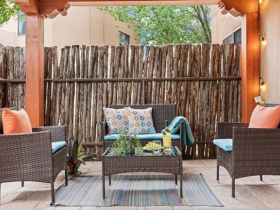 Get in touch with your inner artist in this eclectic 2 bed/2 bath downstairs condo within walking distance to Meow Wolf and nearby breweries and restaurants. Fun locally-inspired decor, a private grill area, and nearby grocery stores and shopping make this a convenient and inspiring option whether you're coming to work temporarily in Santa Fe, looking for economical accommodations, or coming to enjoy concerts or events.