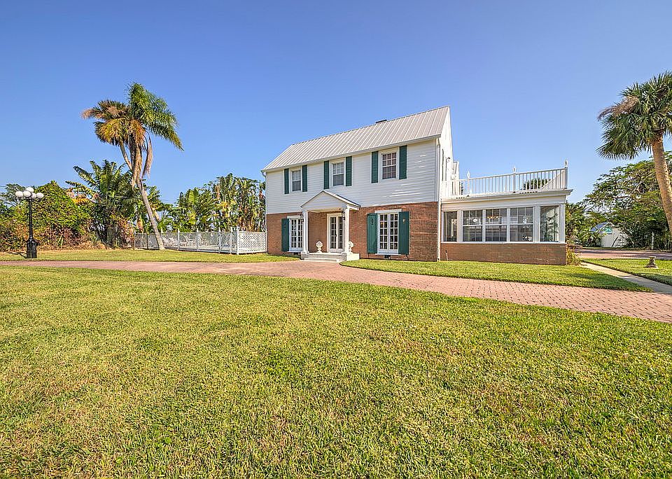 discover riverfront living in this classic Florida multi-unit home. Encompassing over an acre and a half on the Indian River, this property not only has a main house but also includes an above-garage apartment, single-bedroom cottage, and a gym. This house can accommodate a large family or could be a potential source of income. The exterior spaces of this house complete the feel of openness, and the dock, with covered boat lift, provide options for outdoor activities. The main residence contains three bedrooms, a large living room with fireplace, family room, laundry room, dining room and spacious kitchen. The master bedroom contains his and hers closets, a large dressing room, bathroom with double sinks, shower and separate tub. The kitchen provides ample space for the chef, as well as chef's helpers. Counter space surrounds the kitchen and is offset by the marble subway back splash and stainless steel appliances. A variety of enclosed and antique-glass cabinets give options for storage and display. The double stove top ovens allow for high-volume food preparation. Beyond the kitchen, the formal dining room looks upon the tropical pool through French doors. The formal living room sets a warm atmosphere to gather, separate and apart from airy family room. As you continue, you will encounter hardwood floors, a full bathroom with a claw-foot tub, single panel doors, and multiple scenic views of the Indian River. Behind the main residence, a detached two-car garage gives room for vehicles plus extra rooms for storage, and a second hook up for a washer and dryer. Follow the stairs above the garage and you will find yourself in a two-bedroom apartment with full kitchen, bathroom, and enclosed patio with a river view. Beside the garage sits a gym, with enough space for a multiple cardio machines, stretching, and lifting station. To the rear of the game room lies a separate parking area and a single-bedroom cottage. This building sustains itself with a full bathroom, kitchen, bedroom and spacious living room.