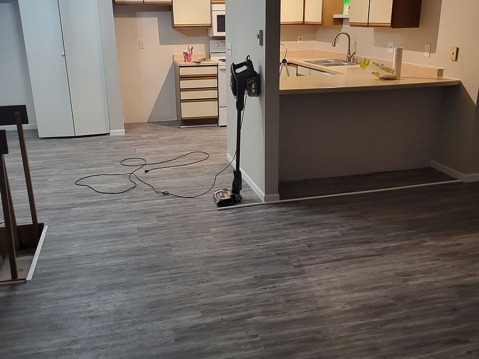 Freshly Painted walls and baseboards. New luxury vinyl plank flooring, faucets and light fixtures. All appliances and blinds included even washer and dryer. Unit has its own private entrance, balcony, and garage as well. Very quiet and private location. close to any kind of shopping you need!