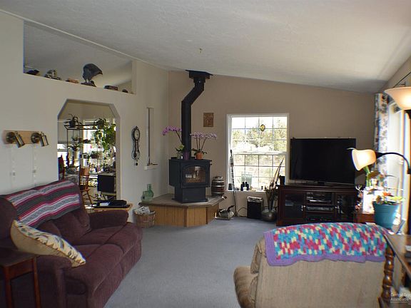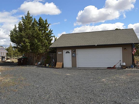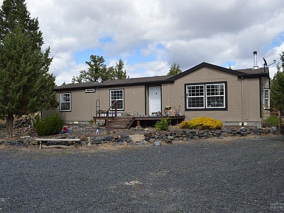 Gorgeous mountain view from 1.81 acres, 1617 sq ft, 3 bed/2 bath mfd, large kitchen, spacious living room, vaulted ceilings, freestanding woodstove, formal dining with bay window, heat pump. Enjoy the outdoor patio, deck, greenhouse, garden area, fruit trees, berries, chicken pen, boat/car cover, large detached 2 car garage with workshop area, private well, gated entry with large rocks lining the gravel driveway. Close to the Ochoco and Prineville Reservoirs for fishing. Backs up to BLM.