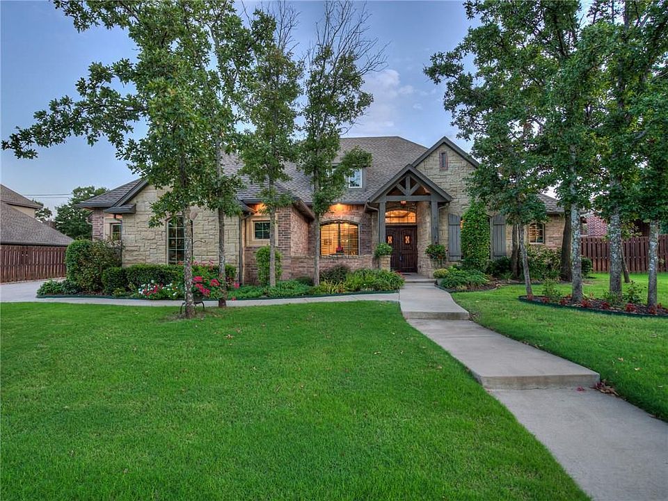 Welcome home to Fairfax Estates! This spacious dream home begins with welcoming front covered porch and patio area, and ends with an equally impressive covered back patio with outdoor fireplace.! All the spaces in between are full of fabulous modern design & sought after amenities. The great room with gas fireplace connects beautifully to the chef's kitchen and breakfast nook. Built-in stainless appliances, pull out spice drawers, pot filler, and butler's pantry feature in this kitchen. A master suite comes with a dual sink vanity, jetted tub, & accompanied by an inspiring walk in closet with built in chest. Tons of extra storage throughout. Bonus room and half bathroom are upstairs for media/game/flex needs. The secondary bedrooms share a spacious bathroom. Each room shows the craftsmanship and attention to detail you should expect. Storm shelter in the single car garage. Located in a gated golf community with neighborhood pool. Start your new lifestyle at 3300 Sawgrass Road...