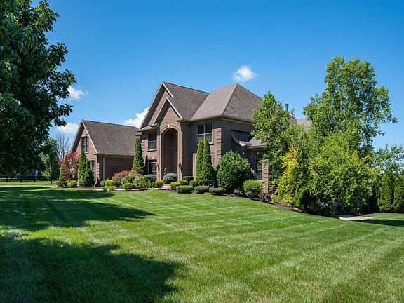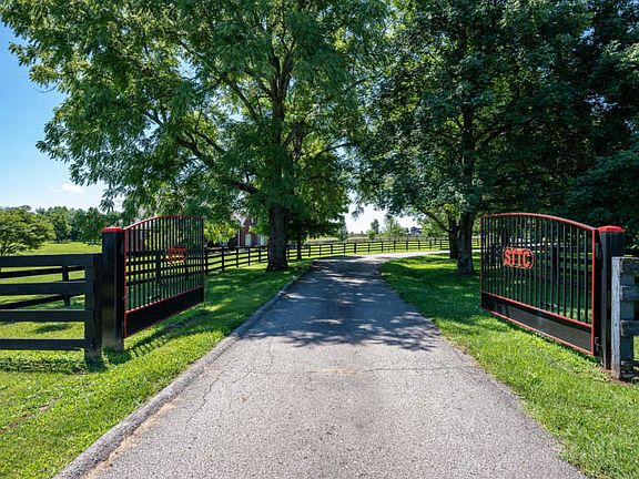 Exquisite and meticulously maintained all brick home with majestic equestrian surround. True Kentucky living! Nearly 9,000 finished square feet on 2.38 acres, nestled at the end of a private tree-lined drive. You will be greeted by lush green pasture and a neatly manicured lawn. Upon entering the home, find yourself wrapped in an abundance of natural light flowing in from the oversized windows. This home's traditional style offers timeless and classy details in the woodwork, large interior doors, and wide hallways. Warm solid wood graces the floors throughout the main level. Front room office with French doors allows for privacy while working from home. To the left of the entry, is a formal dining room adorned with crown molding and wainscoting. Entering the living room, find beautiful built-ins, coffered ceiling, and a stately window wall looking out onto rolling green hills. Continue into the gourmet gathering kitchen, complete with 2 dishwashers, gas stovetop, drawer warmer, walk-in pantry, viewing window above the sink looking out into the horse pastures & barn, breakfast eating area, and an inviting hearth room with a fireplace hugged by more built-ins. First floor Master bedroom with private study/sitting room, wrap around walk-through closet, and spa like on-suite with soaking jet tub, double vanity, and spacious walk-in shower. Home features 2 laundry rooms with built-ins for ultimate convenience, both 1st and 2nd floor. Washers and dryers will remain with the home. Upstairs, you will find 3 very spacious bedrooms, each with its own on-suite and generous walk-in closet. In addition, there is a potential bonus room above the oversized 3-car garage. Head down to the finished walk-out basement for an additional 2959 sqft of living and entertaining space! Basement includes 2nd Master bedroom with on-suite and walk-in closet, full kitchen and pub area with pantry cabinet, dark media room for the ultimate movie viewing experience, recreation room w/built-in audio, possible 6th bedroom, utility/work room perfect for storing tools and other equipment, and an additional 487 sqft of unfinished storage space. Step outside, take a deep breath of fresh country air, hear the birds and peaceful patter of the thoroughbreds in training. Be amazed by the beauty and tranquility of this property! Schedule your sensational showing experience today!
