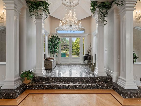 Step into timeless elegance & unlock the potential of this once-stunning residence, awaiting a visionary remodel to restore it to its former glory. From the glittering chandelier in the grand foyer to the opulent hand-carved fireplace in the vast living room, craftsmanship & sophistication still shine, ready to be revived. Sky-high ceilings, floor-to-ceiling windows, & birds-eye maple floors set the stage for transformation. The kitchen, featuring Viking appliances, chef-grade gas range, & granite island, offers an opportunity to update for modern style & function. The expansive walk-out basement includes a full bar, space for a theater or game room, & outdoor kitchen, ideal for entertaining once refreshed. The home sits gracefully poised atop a nearly acre-sized lot, offering serene views & an air of exclusivity, complemented by a gated entry & unmatched potential. A rare chance for investors or dreamers alike to reimagine a true masterpiece. Rebuilt from foundation up in ~2002. Photos taken approx 1 year ago.