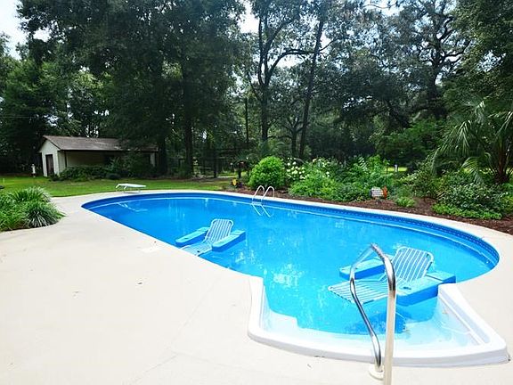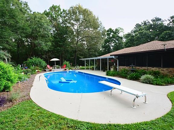 IF you have been looking for privacy, acreage and a well built and well cared for home, your search ends here. One owner home situated on 5 beautiful acres with room for all your favorite things. Approx. 1.5 +/- cleared home site and the remaining acreage is wooded. Perfectly landscaped with butterfly garden, fruit trees and an irrigation system to keep everything lush and green. Home consists of open concept floor plan with two large living areas and a large open eat-in kitchen. UPDATES~ New counter tops, Updated Appliances (Refrigerator, Stove, Built-in Microwave) All New WINDOWS throughout with Hurricane Panels, ROOF less than 5 years old, New Irrigation WELL (less than a year old.)KITCHEN~ True eat-in kitchen with a breakfast bar and updated appliances. Double sink with large window overlooking the beautiful pool area. High ceilings create a spacious work space and hang out for the family. Loads of counter space and the pantry and is steps away as is the formal dining room. The great room is quite spacious and offers a sitting area and a large living area for the family that is anchored with a beautiful floor to ceiling brick fireplace and an entire wall of built-in shelves for books or all your family collectables. Split floor plan~ All but one bedroom have two closets and built-in dresser. Fourth bedroom has been converted to a DREAM CLOSET with dressing area but can easily go back to a bedroom as it has its own closet. Large den is adjacent to the kitchen and this room could serve as a multitude of uses for your family. OUTDOORS~ Butterfly garden next to the pool, Fruit trees at the back of the property with its own irrigation system, and established shrubs and landscapes around the home that are low maintenance with high visual appeal. The WORKSHOP has a garage door and provides your workspace and covered storage on each side. As you walk around this property you will see the care and sweat equity that have been poured in at every turn. MUST SEE!