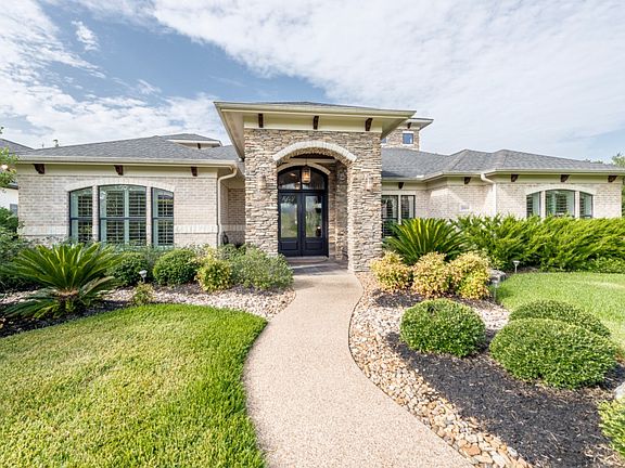 Remarkable custom one-story home located in Traditions on a corner lot sized at just under half an acre. This 3,255 sq. ft. house offers three full bedrooms, three full bathrooms, a large living room, two dining areas, a study, and a large open kitchen. The large family room has a wall of windows with backyard views, a stone accented fireplace with beautiful and functional built-ins. The family room is open to the dining area and kitchen for ease of entertaining. The light and bright island kitchen offers double ovens, built-in wine cooler, eating bar, walk-in pantry and more.The master bathroom includes a double head shower, separate granite vanity tops, a jetted tub, and a walk-in closet. The additional two bedrooms share a Jack and Jill bathroom with separate vanities, and the third bathroom is near the study. This home offers an attached full two car garage plus a golf cart garage. The outdoor space includes an over-sized patio/deck with an outdoor kitchen and a large pergola which is the perfect place to entertain and relax. Mature landscaping brings privacy and creates a quite backyard atmosphere. Unique architectural details with intricate corbels and triple crown molding, Tuscan inspired faux-finished walls and two hand-painted murals are just a few of the quality designs included in this beautiful property. The home is energy efficient, has surround sound system, plantation shutters and much more. Close to country club amenities!