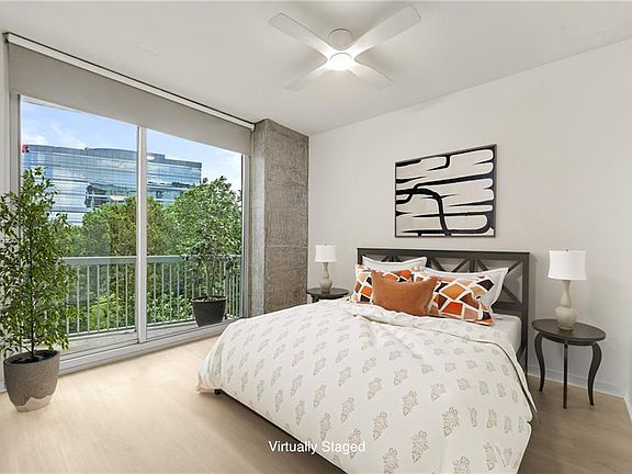 Welcome to Unit 809 at Horizon at Wildwood — a peaceful modern sanctuary nestled in the lush treetops of the Chattahoochee River corridor. Walking, running, and biking trails are steps away, located adjacent to the popular 968-acre Cochran Shoals Trails & Chattahoochee River Park. Just a one-mile walk to Truist Park & The Battery, this area offers excellent dining, sports bars, Braves games, sports, and entertainment. Expansive floor-to-ceiling windows, white painted ceilings, that frame uninterrupted views of mature trees and beyond. This is urban nature at its finest. 809 is the MOST COMPETITIVELY PRICED 2/2 unit in Horizon. This 2-bedroom, 2-bathroom condo blends sleek, modern design with unmatched tranquility. The open-concept layout features. Granite countertops and light-toned hardwood-style flooring throughout. A spacious living area opens to your private balcony, perfect for sipping morning coffee or relaxing with a sunset view through a curtain of green. The beautiful primary bedroom is a true retreat, complete with a beautifully designed custom walk-in closet featuring adjustable shelving and rods, high-end materials, and a refined finish that adds both style and storage. A new Samsung French-door refrigerator and a new Whirlpool dishwasher, both stainless steel. An excellent washer and dryer are also included; alternatively, they can be removed if not needed. An excellent RO water filter system under the kitchen sink. • All new ceiling fans and designer lighting fixtures • Flushed kitchen lights above the island • A contemporary dining chandelier for a warm, inviting glow • Neutral paint is used throughout, including white-painted concrete ceilings. Great western sunset and eastern park views. Feels like a treehouse, lives like a luxury condo. Enjoy the calm of nature without sacrificing modern comfort or accessibility. Building Amenities: • Large Saltwater lap pool, spa, and poolside grilling • Full gym & wellness center • Dog park & club/party rooms, • 24-hour concierge & two ground-floor gated parking • Covered EV charging stations. Enjoy low Cobb County taxes with an Atlanta address — the perfect blend of city convenience and serene escape. Unit 809 is a rare opportunity to live in harmony with nature while enjoying all the luxuries of modern condo living. Schedule your private tour today — and imagine waking up in your own tree-lined oasis. *** 809 is the MOST COMPETITIVELY PRICED 2/2 unit in Horizon*** SPECIAL FINANCING AVAILABLE! $10,000 TRUIST Grant -can be applied toward down payment, closing costs or interest rate buy down, No repayment, 30 YR FIXED LOAN WITH NO PMI, ONLY 3% Downpayment required!