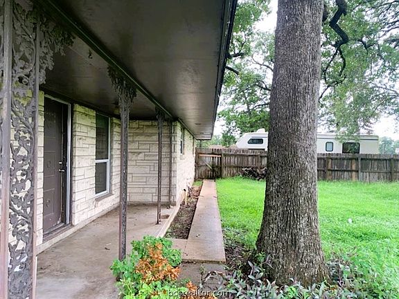 Large corner lot with mature trees. Stone home with spacious bedrooms. Home offers 2.5 bathrooms and 2 large walk-in closets. Wood privacy fence on two sides and chain link fence on two sides. Large covered outdoor kitchen ready for outdoor entertaining. Two car garage with lots of additional parking space. Conveniently located to HWY 6 By Pass.