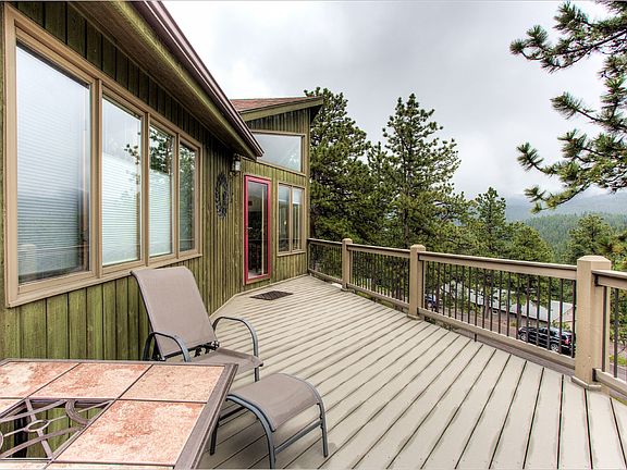 Come see it!! Semi-Custom raised ranch with 4 true bedrooms, 3 full baths, 2636sf on nearly an acre built in 1993. Beautiful open greatroom with vaulted T&G ceilings and a wall of windows to bring in the south facing sun and mountain views. Huge kitchen with SS appliances, granite counters and pantry. Speedy Comcast Internet*Nat Gas*Public Water*Maintained Road make this home easier to manage than most in So Evergreen. The exterior has a stylish distressed stain look with an abundance of composite decking to enjoy. The master suite offers mountain views, private balcony and a luxury 5pc bathroom complete with jetted tub and huge walkin closet. Award winning Evergreen schools. The lower level family rm has ample space for the kids to play but can be opened up by removing a bedroom wall*A wet bar with fridge complete the space. You will love the privacy, fenced yard and extra parking. Easy access off paved road with a gentle driveway. School bus stops just about 200ft away making it easy for the kids.