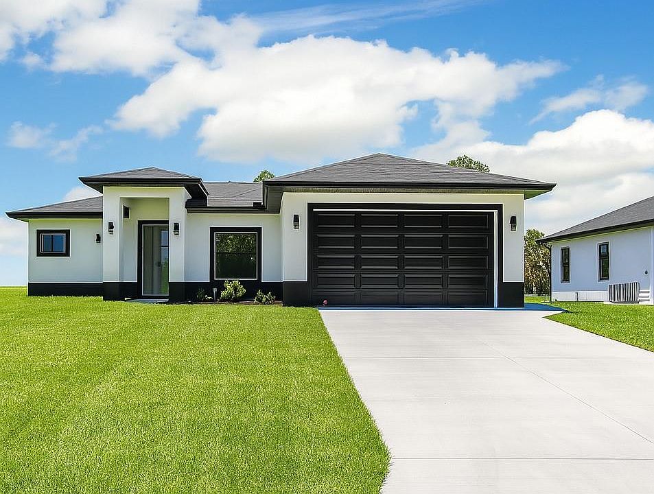 This NEWLY BUILT HOME showcases HIGH-QUALITY FINISHES and a THOUGHTFUL DESIGN that sets it apart. Situated on a CORNER LOT, it offers extra space and privacy. Featuring 4 BEDROOMS and 2 FULL BATHROOMS, this home is designed for comfort and style. TILE FLOORING THROUGHOUT enhances both aesthetics and durability, while the MODERN LIVING ROOM stands out with a FIREPLACE and UNIQUE DESIGN ELEMENTS rarely found at this price. The SPACIOUS KITCHEN impresses with a STUNNING WATERFALL ISLAND, PREMIUM FINISHES, and a FUNCTIONAL LAYOUT ideal for daily living and entertaining. IMPACT-RESISTANT GLASS WINDOWS & DOORS provide enhanced security and energy efficiency. Enjoy a 2-CAR GARAGE with EPOXY FLOORING, a DEDICATED WASHER & DRYER AREA, and outdoor living with ELEGANTLY TILED PORCH & TERRACE spaces. Additional upgrades include PENDANT LIGHTS, CEILING FANS, LED LIGHTING, STYLISH BATHROOM MIRRORS & FIXTURES, and a SECURITY CAMERA SYSTEM for added peace of mind. Located in a TOP LEHIGH ACRES ZIP CODE, just 17 MILES FROM FORT MYERS INTERNATIONAL AIRPORT, this property offers CONVENIENCE & EASY ACCESS to everything the area has to offer.