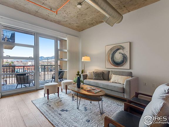 Now one of the best priced per square foot unit at the Peloton. This unit is not to be missed. Spacious & modern, 3rd floor south-facing 1 bedroom/ 1 bath with Flatiron & foothill views. Extra large one bedroom unit at 1162 square feet. Spacious kitchen features stainless steel appliances w gas range & kitchen island. Exposed concrete ceiling & ductwork in living room. Wood flooring. Spacious walk-in closet. South-facing patio off living room. Includes 2 underground garage parking spaces, which is rare for a 1 bedroom + additional storage unit. Homeowners have exclusive access to unparalleled amenities including a heated year-round rooftop pool, hot tubs, private clubhouse & screening room, state of the art fitness center & onsite restaurants. Building is concrete & steel construction.