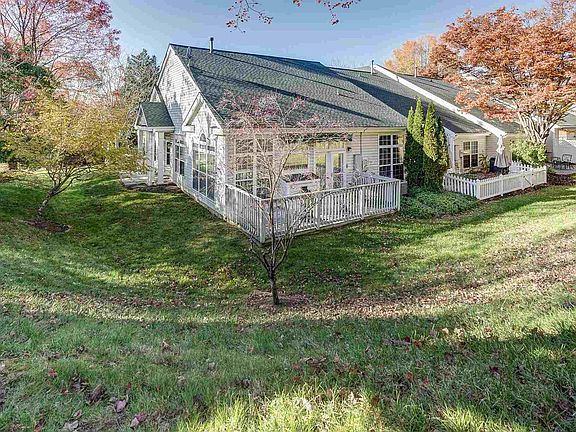 Maintenance free living in this one level, light filled home in Forest Lakes. Walk to community pools, shops, and miles of nature trails! Open floor plan features living room and dining room with tray ceilings, oversized windows and low-maintenance vinyl wood-look flooring. Kitchen features an eat in breakfast nook, wood cabinets, and large pantry. Enjoy morning coffee or a glass of wine on the rear deck with automated retractable sun awning, and natural privacy. The owners suite features an oversized private bathroom with corner jetted soaking tub, dual vanities and separate shower. A second bedroom could also be a home office or study and features a second full bathroom with handicapped accessible bathtub. A large two car garage with attic space above offers great storage space too! HOA provides all exterior upkeep and lawn maintenance.