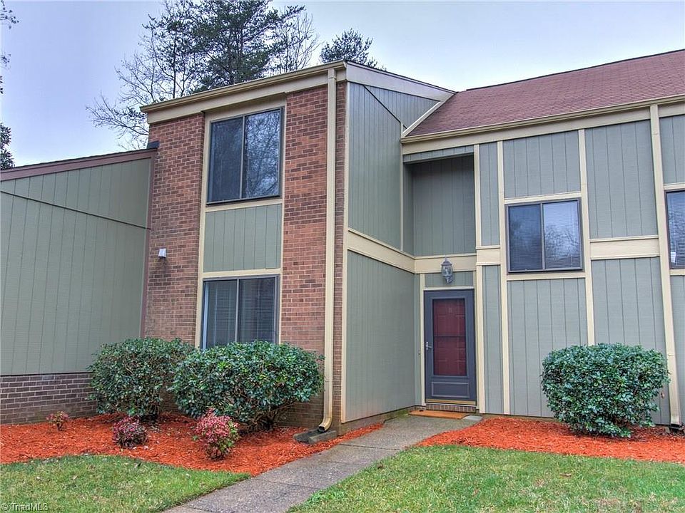 Beautifully updated 2 story townhome w/ one bedroom & half bath on the main level. Features include remodeled Kitchen w/ updated cabinetry, countertops & fixtures. New laminate wood-look floors & new carpet. Separate laundry room. Great Room w/ volume ceilings offers lots of light, fireplace w/ tile surround overlooks private patio & common area. 2 spacious bedrooms on 2nd level. Master Suite w/ its own bath & walk in closet. Conveniently located for easy travel throughout Triad, near shopping & schools.