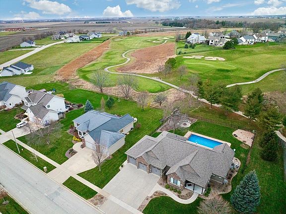 This exceptional, custom-built Trunk Bay, sprawling ranch home built in 2014 offers a unique opportunity to own a truly one-of-a-kind property that combines luxury living with an unbeatable location overlooking the Den at Fox Creek Golf Course that boasts an in-ground, heated, salt-water pool with electric operated cover (*NEW* 2022 pool heater professionally installed) as well as a wealth of high-end features - this home is designed for both comfort and entertaining!!! This 5 bedroom ranch home is more than meets the eye!!! Natural light shines throughout graced with floor to ceiling windows/sliders for easy access to your backyard oasis with covered patio! There are hardwood floors throughout, spacious foyer, open concept living, custom kitchen and finished basement with wet-bar and ample storage!!! Large mudroom off the garage features built-in locker system, wash area and a half bath around the corner. Master suite on main level with amazing view of backyard golf course, tray ceiling with enhanced lighting, updated full bath with separate primary vanities, contemporary free-standing tub with separate walk-in, curbless shower entry that features 3 shower heads! This master suite also features a private toilet closet, custom windows for natural light, as well as an over-sized closet with professional, upgraded closet organizers. The main floor also features two additional bedrooms with custom closet organization: one with a full bath attached and the other (would also make a nice executive office overlooking the golf course) with floor to ceiling windows, half-bath attached that allows easy access with sliding glass door to your covered patio and pool making this a convenient room for guests to utilize as well!! In addition, the main level boasts high ceilings, gas burning fireplace with custom cedar mantle, family room and high-end, gourmet kitchen with eat-in area and a separate dining room that could make a 4th bedroom if needed on the main floor!!! This oversized, custom kitchen showcases ample, luxury, floor to ceiling cabinetry and millwork (soft-close features), LARGE kitchen island with built-in sink along with hidden storage underneath, commercial hood vent with separate ventilation, high-end backsplash, pantry area, upgraded Monogram, stainless-steel appliances: double oven, gas stove, etc. This kitchen is PERFECT for entertaining!!! Entering the fully, finished basement you will find inviting lighting created by the multiple windows with remote controlled blinds! This basement is an entertainers dream with open concept family room, custom wet-bar that boasts additional refrigerator, microwave, dishwasher, island with built-ins and ample room for play! In addition, there are two, spacious, bedrooms along with a full bath AND a workout room complete with mirrors and unique, oversized closet!!! There is AMPLE storage for this home as well in the basement and garage!!! The garage that comes with this home is an absolute dream: heated, ALL 3 separate stalls with OVER 7ft door clearance, separate wash area, an additional workshop with 2 doors that lead to the backyard for easy landscaping maintenance and storage!!! Additional upgraded features include: zoned climate control (main level, master suite and basement) with smart home technology and wireless irrigation system! Unit 5 Schools and close to highway! NO HOA! Do not miss your opportunity to own this well-cared for, custom home today! All information deemed reliable but is not guaranteed and should be independently verified!
