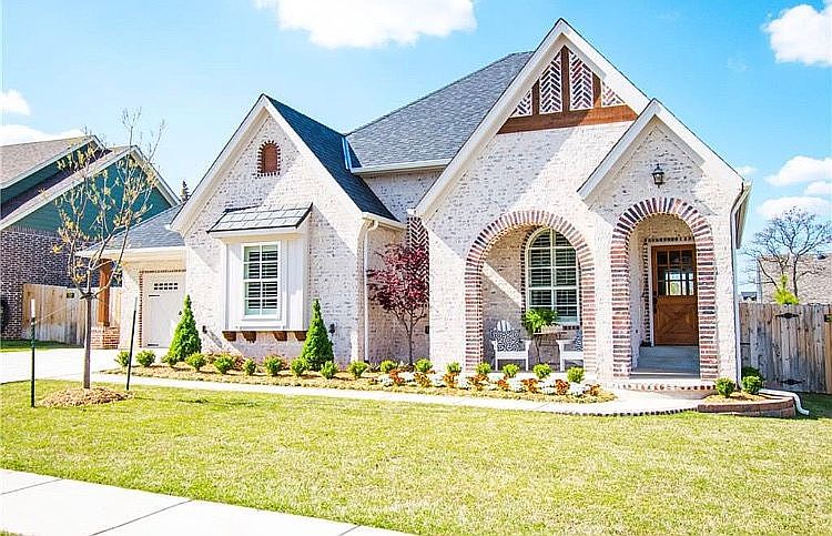 You will love this charming Tudor-Style home in the sought after Town Square neighborhood.This home has all the upgrades! Beautiful kitchen with stainless appliances, gas stove, farm sink, quartz countertops, walk-in pantry and large island with banquette bench seating. The living area has vaulted ceilings with wood beams, built-ins and gas fireplace. Upgrades include hardwood floors throughout, plantation shutters, sink in laundry, extra fencing, brick-lined entry sidewalk/porch and upgraded garage doors. Spacious master bedroom with spacious walk-in closet with access to the laundry room. The garage is a 3-car tandem with plenty of room and the attic space has a large floored area for extra storage. Town Square features beautiful common areas with pond and fountain and a large Community Center with pool and fitness center. Easy access to I-35, turnpike, and shopping.
