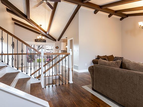 Fabulous home with vaulted ceilings. Top of the line Andersen windows throughout bring an abundance of natural light into the home. Gorgeous exposed beams highlight vaulted ceilings. Wood floors. New carpet. Updated kitchen with new cabinets and granite countertops. New bathroom vanities. Newer HVAC. Wood burning stove with brick fireplace. Awesome, large, flat lot. ATT fiber internet available. Tons of extra storage. Workshop. Lower level can easily be a second living quarters or in-law suite.