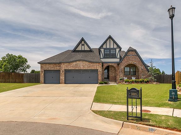 Love where you live in Edmond's popular Town Square Addition! Nearly new Tudor style home with all the amenities you could ask for. Say goodbye to your gym membership- Town Square has its own state of the art workout facility, resort style pool, clubhouse, playground, walking trails etc. Located in a quiet cul-de-sac with a huge backyard (lot is nearly 1/3 acre) This home features wood floors in main living spaces, 3 car garage, storm shelter, covered front and back patio, sprinkler system etc. 3 beds, 2 baths downstairs with a bonus room and 1/2 bath up. The living room features floor to ceiling stone fireplace, cathedral ceiling and wood beams. Kitchen features a gas range cooktop, smart storage in the pantry and island with storage below. Primary suite features separate vanities and a freestanding soaker tub. Owner is licensed. Renter responsible for yard maintenance. Pets upon approval. Non refundable pet deposit of $400. Owner is licensed Realtor. Tours will not be available until March 5th.