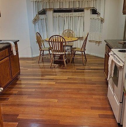 - Description: Breakfast Nook/Eating Area,Custom Cabinets,Granite Countertops,Hardwood Flooring