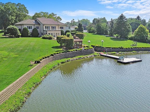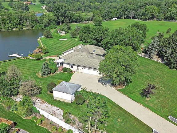 **MULTIPLE OFFERS RECEIVED **STUNNING LAKEFRONT 5.5 ACRE ESTATE! This spectacular 7,000 sq ft hillside RANCH w/ finished walk-out basement, boasts over 350 feet of LAKEFRONT property on 5+ rolling acres, overlooking a 14 acre stocked lake in unincorporated Crete; just a stone's throw from the Indiana border! Featuring 4 bedrooms (plus a home office), 3.5 baths, PRIVATE DOCK, gazebo, 3 garages, and a finished lower level w/ 2nd kitchen is perfect for RELATED LIVING. Heated floors, original CUSTOM TILE roof, TWO fireplaces, massive main floor primary suite (18x20'), skylights and rolling privacy shutters are just a few of the unique features of this glamorous custom estate. Finished walk-out basement includes HUGE rec room, CUSTOM BAR, HOME GYM, 2nd kitchen, 3 season room, bedroom & full bath. Even the pool table, sauna, HOT TUB & whole house generator are included! NEW PAVER BRICK driveway (3 yrs), zoned boilers (8yrs), newer AC (3 yrs), private well/septic. Nothing like it on the market! Buyers must be preapproved to show.