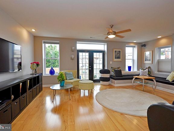 Stunning, one of a kind conversion from the former Canton Oil Co will WOW you! 23 feet wide with over 3300 square feet of living space, this home is open, bright, and ideal for entertaining. The layout is unique, with the main living space on the second floor; this allows a great deal of light and privacy on this level. Party prep is a breeze in the multi-cook kitchen with huge island, 6-burner cooktop, double wall ovens, wine chiller, pantry, and breakfast nook with built-in banquette. The open living/dining space allows mixing and mingling, and features wood floors, a 3-sided gas fireplace, and French doors to a Juliet balcony. On the ground floor, there are two bedrooms (one of which is a perfect home office, right off of the foyer if you need to receive clients or deliveries), a dual-entry bathroom with artistic tile, a wine storage closet, and a large laundry/utility/storage room. The third floor hosts the master suite, complete with soaring ceilings, a gas fireplace, enormous walk-in closet, striking bath with Jacuzzi tub and separate shower, sitting area with wet bar and built-in cabinetry/bookcases, and access to the tiered rooftop deck. This fantastic outdoor entertaining space offers panoramic downtown skyline, expansive harbor, and iconic Canton views. Get ready to be the popular house during fireworks displays and Blue Angels’ airshows. There is plentiful, free street parking in this location, since most of the homes in the area have garages. There is also nearby rental parking available, or you could have a side-entry garage carved out of part of the ground floor. Hurry while there’s still time for summer entertaining!