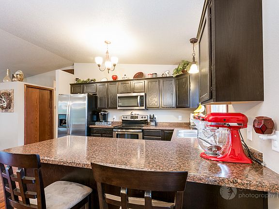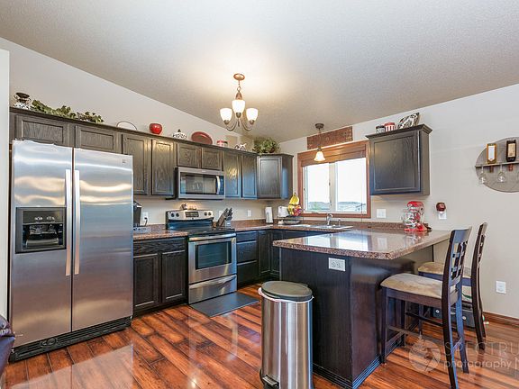 This exceptional Ranch style home w/ NO SPECIALS is one you will not want to miss out on. Located in NE Bismarck close to the Sunrise Centre and Sunrise Elementary School. Featuring 4 bedrooms, 3 full baths, oversized triple garage w/ 8' doors, keyless entry, heater, floor drain, water, insulated and service door to the exterior backyard. Need a camper pad for the boat? This home has it! NO direct backyard neighbors and oversized backyard patio. Two sides of the backyard is fenced. There are sprinklers, shed and landscaping is complete. The kitchen offers a large sit up breakfast bar, upgraded appliances and flooring. Two nice sized bedrooms including the master bedroom suite w/ full tub/shower combo and his and hers closets. Take the steps downstairs you will find a walk out to the backyard, a spacious family room, 2 additional bedrooms one with a large walk in closet , laundry w/ utility sink and full bathroom. Call today !
