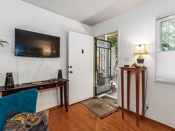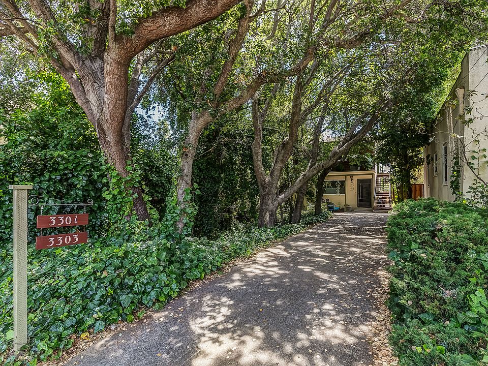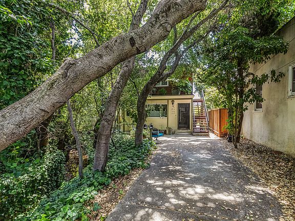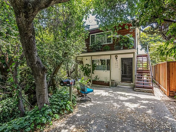 A canopy of graceful oaks covers the approach to this handsome duplex. The uniqueness of this wooded setting, in the midst of an urban environment, cannot be understated. Through newly installed energy efficient, dual paned windows, its impossible not to enjoy the views of these trees and the charming creek that winds its way through the property. The duplex's exterior has been recently painted and the original wood siding has been returned to its natural luster. Each unit offers a spacious living room with large windows providing abundant natural light. The dining area has a lovely view of the creek and enjoys a nearby glass cabinet that provides easy access to dinnerware. The kitchen has a gas cooktop, dishwasher, abundant cabinetry, and back door to the outside patio (lower unit) or wrap around deck (upper unit). The laundry closet is located on the outside lower level. This duplex has been lovingly maintained by its original family owners.