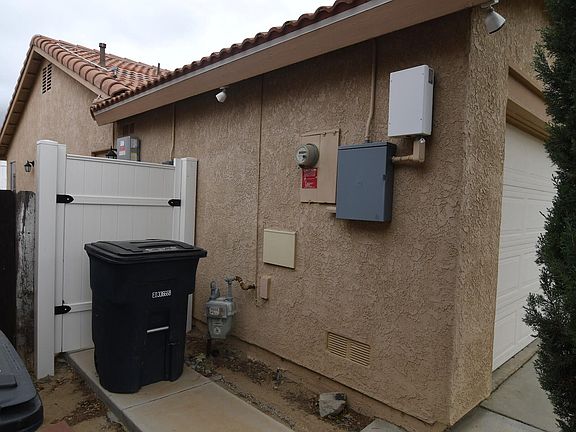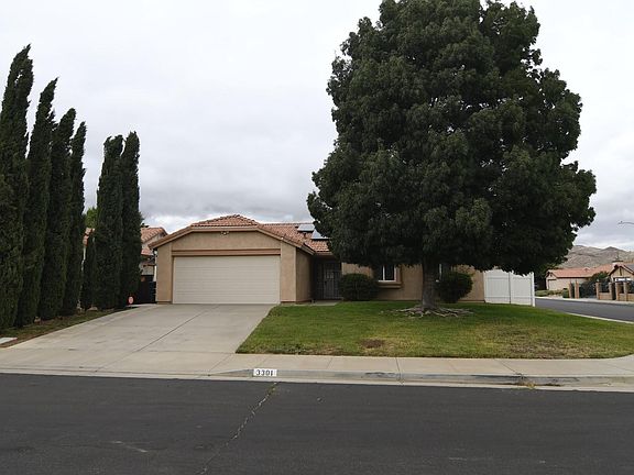 Welcome to this Nicely Manicured Corner Lot, landscaped curb appeal Cozy 3 bedroom 2 bathroom home in Rosamond, a Must See! It is a Great Single Story Starter Home for First-Time Buyers, seeking Interest Rate Buy Down Program Assistance or Investors looking for an Investment Property. Features carpeting and tile flooring, Window covered Blinds throughout the home, Solar Panels installed by Sunrun Solar company with a low monthly rate of $117.89, Vivint Security System and Doorbell Camera, gas fireplace in living room, formal dining area, with sliding door that leads to a covered patio offering privacy for entertaining, with a nice size Storage Shed in spacious rear yard. Stainless steel kitchen appliances included in sale, stove, mounted microwave and dishwasher complimented by upgrades as follows; Stainless Steel double sink, granite countertops, recessed lighting and cabinets. Breakfast bar opens up to an additional living area with a second slider door exiting to the side yard, the interior two car garage door is also off of this space and Front Entry. The master bedroom has a third sliding door for access to the back yard. Nearby shopping, banking, schools, and parks. Home is being Sold As Is.