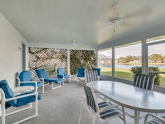 *** Price reduced $5,000.*** This is a very special home. 3 bedrooms, 2 full baths, 2 car garage with wonderful relaxing lake views and breezes included in Flood Zone X (very important). Over sized covered lanai allows for endless shaded relaxing watching the ducks land. Center Island butcher block kitchen with a pass thru to the living room and open to the family room lends this floor plan to an open concept. Recent updates are the flooring and painting and the AC is 2012 and exterior paintingin 2016.