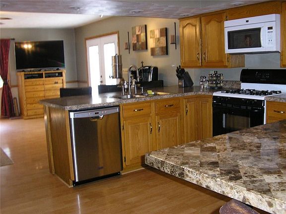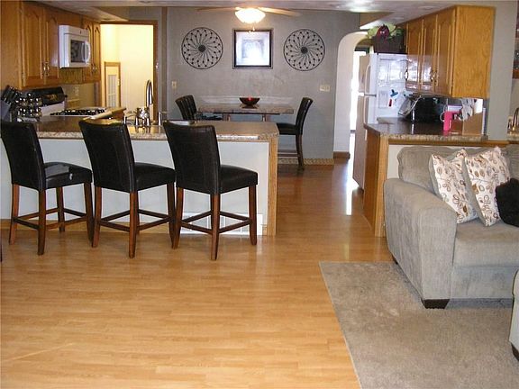Newly remodeled bathrooms; Eat -in kitchen features newer appliances and breakfast bar. Great room is open to kitchen and features wet bar/wine fridge, track lighting, French doors with internal blinds open to tiered deck and beautifully landscaped yard. Fenced yard with large garden pond with waterfall.