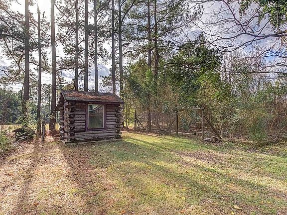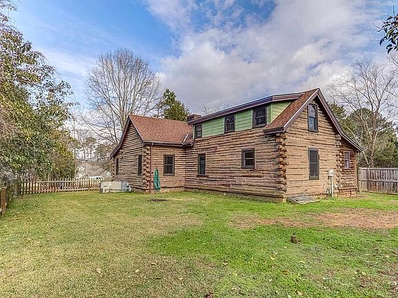 Cozy Cabin in southeast Apex with spacious fenced yard and TWO screened porches. Red pine log walls inside, hardwoods in living room with side nook perfect for reading/dining with built in shelves. New Stove and Hood in KT opens to spacious FR w/lots of windows and two story ceiling. One Bedroom and full bathroom downstairs, and two bedrooms and full bathroom upstairs. Storage shed out back. FP is ornamental only, can not be used. KT countertops backorder will be replaced in April. 6 month = +$300/mo Utilities paid for by renter.