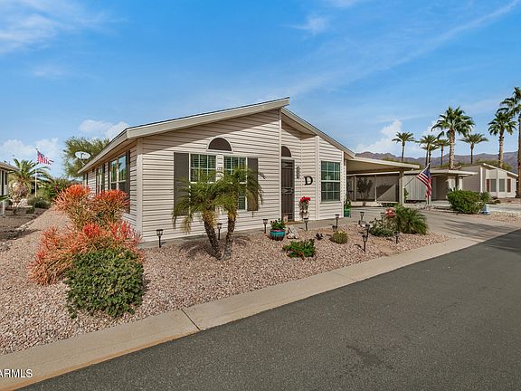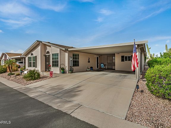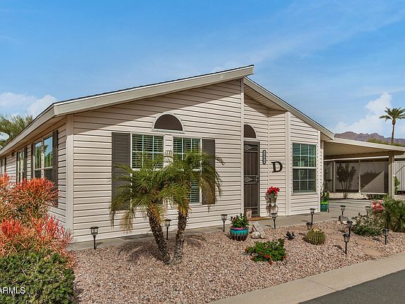 This bright, move-in ready, partially furnished open concept home offers; abundant natural light that creates a relaxing atmosphere, premium LPV flooring and high end carpet, top of the line, stainless steel appliances, under cabinet lighting, extra-large master bedroom w/ ensuite (dual-vanity), walk in closet, abundant lighting w/high ceilings, extra storage throughout, security screens, outside storage room, extra-large, double carport, Newly tiled and screened-in Arizona room that leads out to a spacious, lush and tranquil, private back yard with a fruit tree, birds and stunning, views of the infamous, Superstition Moun This vibrant community offers a serene desert lifestyle with stunning mountain views where residents enjoy an active lifestyle with full range of amenities that include a 3,300 clubhouse that offers, state of the art gym, dance hall, card room, crafts room, pool hall, library, movie-room, zero-entry/walk-in pool, pickleball courts, mini putting green, shuffleboard, 3-dog parks, exercise classes and much more.