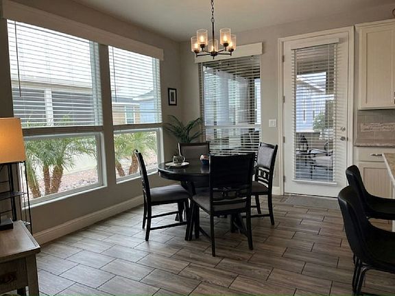 55+ age qualified community. Your new home is waiting for you in Dolce Vita, a well-maintained, professionally managed manufactured home community. This 2 bed/2 bath plus den, 1680.00 sq. ft. home with garage and a screened in arizona is a beauty! This home comes furnished with the must have's. Beds, nightstands, couches, entertainment console and much more. Just ask for a detailed list. Outdoor front patio with custom built pergola. Nice open kitchen with stainless steel appliances, with a huge furniture kitchen island with sink in it. Beautiful white cabinets with silver hardware and plenty of storage. This is an open-concept floor plan. The az screened in room is off of the living room and is nice to host guests, also has an entrance from the master bedroom. Nice big master bedroom with an on suite. A den and another guest bedroom. Great size laundry room. This is a must see! Call Trisha or Ana at 480-288-1818.