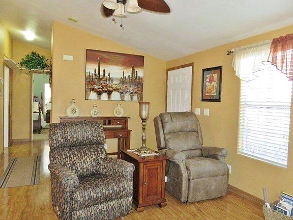 Extra-Sharp, Completely Furnished, 2 Bedroom Plan with Vaulted Ceilings, Shutters, Wood Flooring & upgraded Fixtures. Lovingly maintained w/views of the Superstition Mountain from the east side patio! Great corner lot, 2-car Carport & Full-length Arizona Room across back! State-of-the-art 33,000 square foot clubhouse, library with computer center and elaborate billiards room both w/Mountain views. Great workout facility w/cardio & circuit training equipment ,craft room w/kiln, two card rooms, relaxing movie theater w/extensive video library, complete kitchen & 6,200 square foot ballroom, perfect for concerts, dances & special events.. Water aerobics classes in 3,000 square foot ocean-entry, heated pool, two spas, tennis, pickle ball, bocce ball, horseshoes, shuffleboard & putting green