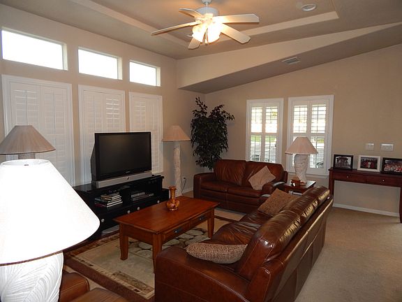 Enjoy walking right out your front door to enjoy the resort style pool and Jacuzzi, fitness room, so much more!!! This super cute furnished two bedroom, two bathroom is one you are sure to fall in love with. The kitchen has all Kitchen Aide stainless steel appliances purchased in 2014 that include a glass top stove, 3 door french refrigerator with ice and water, garbage disposal, and above stove microwave. The kitchen has a large breakfast bar, butlers pantry and lots of cabinets and counter space. The laminate in this home runs through the entry, dining, kitchen, hallway and guest bathroom, and computer area was just replaced in 2015. All the faucets in this home were replaced in 2015. You will get the washer & dryer with this home, it comes with closing closet doors and built in cabinets. The living room has dormer windows and is open to the kitchen and dining. Perfect for entertaining! Lots of natural light in this home! The master bedroom has an additional seating area with a sliding glass door that opens to a patio. The master bathroom has double sinks, linen closet and a walk in shower. The guest room is very spacious too and located right next to the second bathroom. There is a built in desk/office area that leads out to the Arizona room complete with newly epoxied floors, bamboo shades, grill, patio heater and outdoor furniture that was bought in 2015. (A $3,000.00 value) There is central air and heat for this home. This home is all electric and also has a shed complete with electric and shelves. Easy Arizona desert landscaping and completely furnished besides housewares! This is perfect for year round or a winter home! The home is located in an active 55+ gated, luxury community! Enjoy amenities year round that consist of a heated pool, fitness facility, organized events, shuffle board and so much more! Call today to see this home! EHO, certain restrictions may apply. See more listings at www.aznestfinders.com