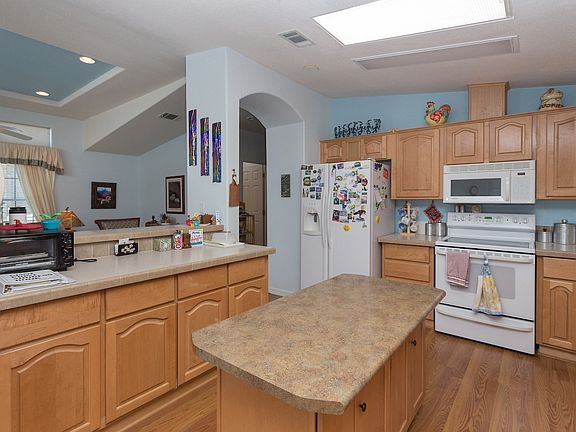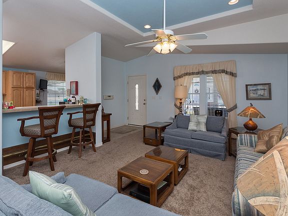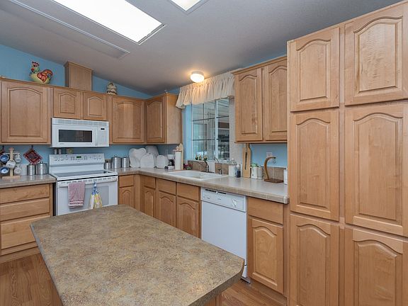Enjoy your morning coffee on this great porch. Inside you will enjoy the spacious living room with a great pass-thru to the kitchen for a sitting area plus eat in kitchen. Lots of cupboards, countertop area and island kitchen. All kitchen appliances plus washer/dryer are included. Laundry area is complete with a sink. Office area has built-in desk and cupboards for lots of storage. Master bdrm has a walk in closet and has a great sitting area that goes out into the porch with all windows and an epoxy floor. Laminate flooring in kitchen and both bathrooms.