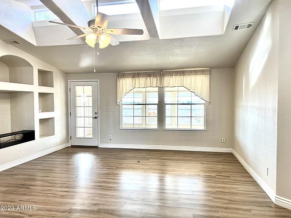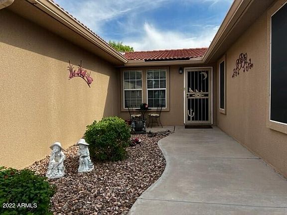 Sooo Unique, Bright and Beautiful! Located in the Luxury 55+ Community of Dolce Vita. Guest quarters are separated from the main living area for privacy. This stunning home has laminate flooring throughout. The island kitchen has all white appliances, an R.O. system and a large walk in pantry. You'll find a built in entertainment center, vaulted ceilings, plenty of light and even a radio with a thumb drive capacity attached. Your epoxy floor in the Arizona room shines. There are 3 doors- One from the living room, One to the covered Patio, one to the BBQ, area, Water softener & another Patio. The state of the art 33,000 sq ft Clubhouse is amazing.l Walk right in to the pool. There is a huge ballroom, work-out room, Billiards, Library, card & Craft rooms & much more. Call for appt. today.