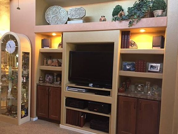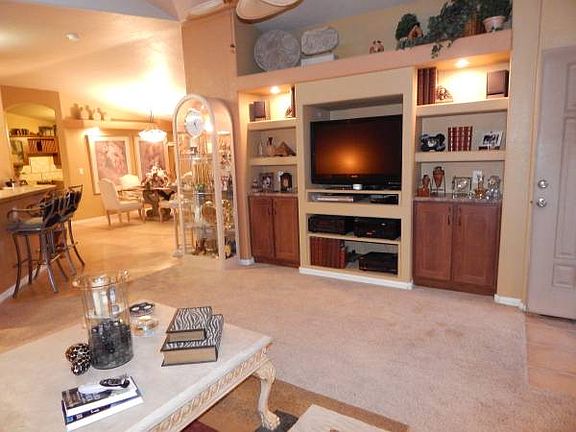 This lovely Cavco, La Cantania home is a must see! The mountain views are breath taking and unobstructed! Pictures do not so justice! Some furnishings will come with home. Leather curved couch and ottomans, recliner chair, lamps, tv, patio furniture and much more! This 2 bedroom 2 bathroom, plus a den AND a screened in AZ room home is placed on a large perimeter lot! As you walk in this home you enter through a security door and are greeted with a large living room with a built in entertainment center with custom shelving, designer wall paper, ceiling fans, skylights, arched doorways, custom window coverings, bright dormer windows, a bay window, and a open view of the home! The formal dining room, kitchen, informal dining, and both bathrooms all have beautiful 18X18 travertine tile with decorator designs in walkways. The formal dining room is large and will easily accommodate a big group and has canned lighting with dimmers. The informal dining room isn't anything short of spacious either and also has canned lighting with dimmers! The kitchen is open and comes with all electric stainless steel appliances which include, a refrigerator, glass top stove, built in microwave, garbage disposal, dishwasher, r/o system, washer and dyer. In the kitchen we have a breakfast bar, lots of storage, upgraded granite sink, and tile backsplash. The home has extra storage closets throughout the home! The den has beautiful double doors that open up to the large room with wall length built in desk and shelving/cabinets, it could easily accommodate a day bed for extra room for guests. The guest bedroom is spacious and has a large closet for storage, the guest bathroom is clean and spacious. The master bedroom has a walk in closet and a master bathroom connected to it, the bathroom has a large sunkin tub, walk in shower, private toilet, and storage closet! The outside of this home is perfect for this Arizona weather, with a large enclosed Arizona room and a hidden storage shed with electric! The garage can easily accommodate 2 cars and has also been upgraded to keyless entry!! Call today to see this super charming home. The home is located in a 55+ Active community. Enjoy the amenities of a resort style pool and Jacuzzi, fitness room, billiards, library, card room, shuffleboard, organized events and so much more! EHO, certain restrictions may apply.