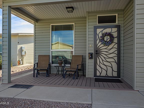 **REDUCED**SUPERSTITION MOUNTAIN VIEW** FABULOUS OUTDOOR LIVING** Fall in love with the OPEN CONCEPT plan of this 2 bed 2 bath Cavco home. The interior boasts a spacious living room, 9' ceilings and a warm, earthy palette. The eat-in kitchen features recessed lighting, knotty cabinets with crown moulding, SS appliances, tile backsplash & an island. The primary bedroom hosts a walk-in closet & an ensuite with a dual vanity. Out the back, discover a screened porch, perfect for year-round entertaining and the porch furniture, TV and electric fire place are included! The backyard has an attached pergola with pavers; the firepit and umbrella are also included. Enjoy the SWEET LIFE at this premier 55+ resort community - clubhouse, pool, pickleball, fitness center and an activities director!