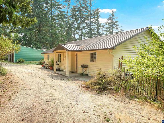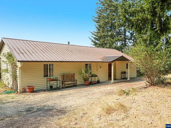 Enjoy quiet country living in Silverton on this just under two acre hobby farm w/ beautiful valley views. Cozy 1,490 sq. ft. ranch home, detached 3 car garage/shop, approx. 800 sq ft detached studio apt (incl. kitchen, full bath, bedroom), chicken coop, mature fruit trees, berries, grapes, large garden spot, greenhouses. Main home appliances, lawnmowers, and many yard tools incl in sales price. RV cover w/ hookup for sewer/water. Shared well w/ neighbor. Located on a paved, dead end road. Motivated seller.