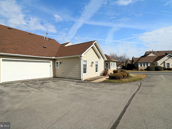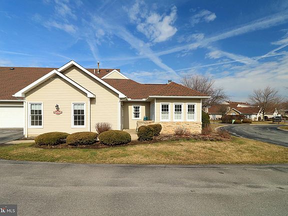 Welcome to Thoroughbred Crossing! Low maintenance and centrally located these homes are always in demand. 2 bedroom, 2 bathroom and 2-car garage. Vaulted ceiling and gas fireplace in living room, open floor plan. Bright and cheerful sunroom off living room. Galley kitchen with all appliances included, breakfast bar overlooking dining/living. Laundry room (washer and dryer included) off kitchen. Large, light primary bedroom with tray ceiling, 2 walk in closets and private full bath. Guest bedroom and another full bath off living room. Natural gas heat, central air. Association fee includes lawn, snow, exterior maintenance, water, sewer, trash and a central pool and clubhouse. Easy living!