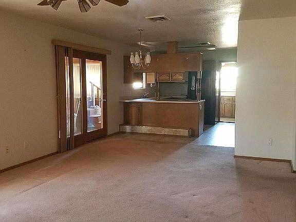 An RVer's delight, there is a 53' drive through garage plus a 25 x 40' workshop for the hobby enthusiast. This Southwest stucco home is located in a quiet residential RV -friendly age 55 plus neighborhood right off I 10. This two bedroom, 2 bath home has ample storage with two walk-in closets as well as a nice linen closet. There is a living room/dining room/kitchen combo with an island/bar separating the dining room and kitchen. The living room also has a gas fireplace. The enclosed ac/heated porch is separated from the dining room by French doors. On the 23 x 14 porch is a hot tub plus plenty of flexible space for lounging and exercise. The kitchen includes an electric stove, French door refrigerator with ice maker, microwave and ample cabinets and a lazy Susan. Flooring is vinyl in kitchen and pantry/office. The other flooring is carpet. The laundry features a nice set of washer/dryer appliances and also has the water heater. It is a walk-through laundry which accesses the RV garage. As previously noted, the RV garage is a spacious 53'6" x 14' with two 16' overhead doors, one on each end. An additional garage (20 x 19) is located behind the workshop and a carport (19 x 11.6) is in front of the house. A little about Deming: County seat of Luna County, Deming is located in south New Mexico about 30 miles from Mexico. Nestled in the mountains, there are two nearby state parks and recreational opportunities as well as several civic organizations. It is a great place for RVers and snowbirds and easy on budgets.
