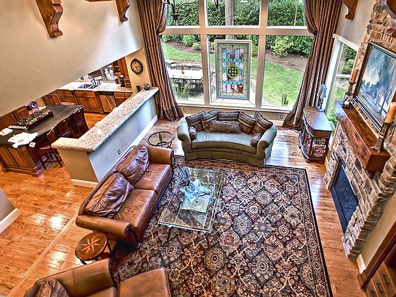 Beautiful custom home in desirable Lake Grove neighborhood, large lot w/ mature landscape for privacy. High end finishes: cherry floors & cabinets, travertine & mosaic tiles, custom iron work, great room wood trusses. Perfect open floor-plan for entertaining. Gourmet kit with 6-in granite counters, island, SS appliances. Huge basement w/ 10ft ceilings, wet bar, family room, bath & bed