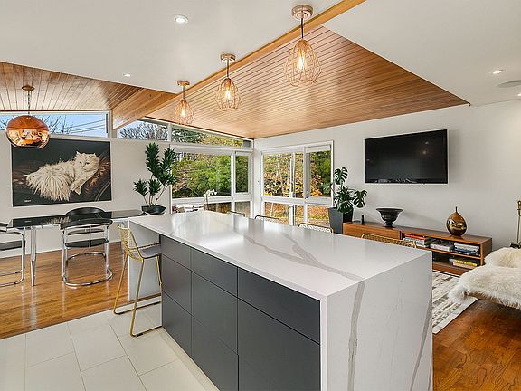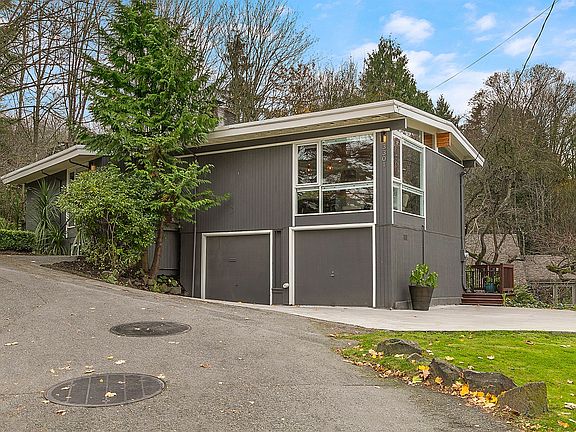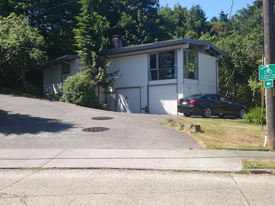 Remodeled mid-century modern home with open concept living across the street from Commodore Park and Ballard Locks, and walking distance to Discovery Park and Ballard. The updated kitchen with elegant modern amenities also includes a large contemporary island with plenty of seating that opens to formal dining and living areas that's warmed by a wood burning brick fireplace while surrounded by floor to ceiling windows and a vaulted natural wood ceiling. Off the kitchen, is a sturdy 400 square foot deck with privacy landscaping that's perfect for outdoor entertainment and barbecuing. The main level also includes 3 bedrooms and 1 full bathroom while the lower level includes an open recreation, living, and studio areas with a half-bathroom and back patio.